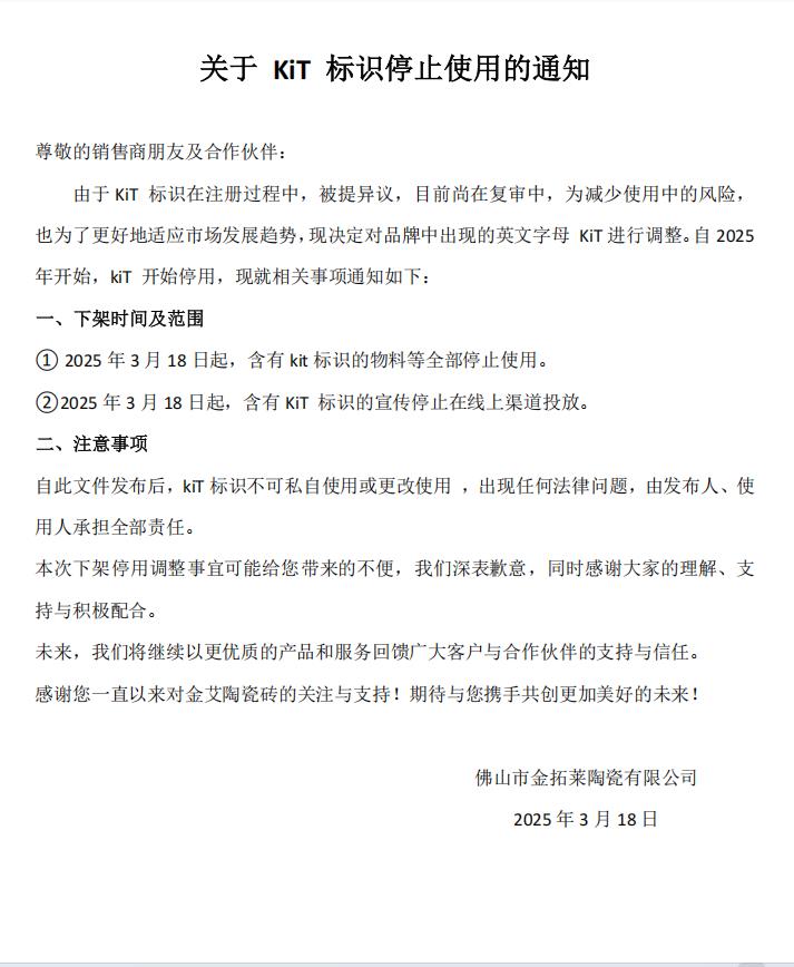 • 關(guān)于KIT標(biāo)識停止使用的通知——關(guān)于KIT標(biāo)識停止使用的通知
